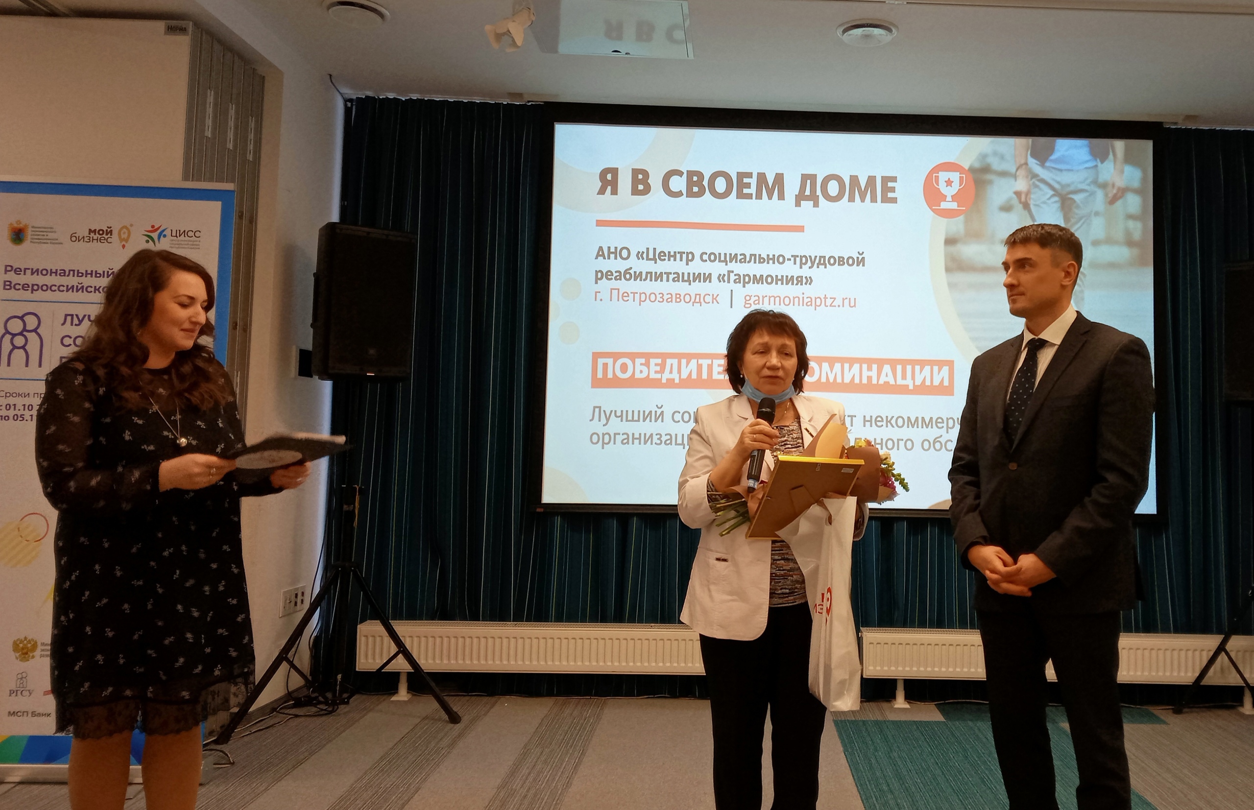 Вручение Председателю Гармонии Наталье Анатольевне Крицкой награды за лучший социальный проект года.
