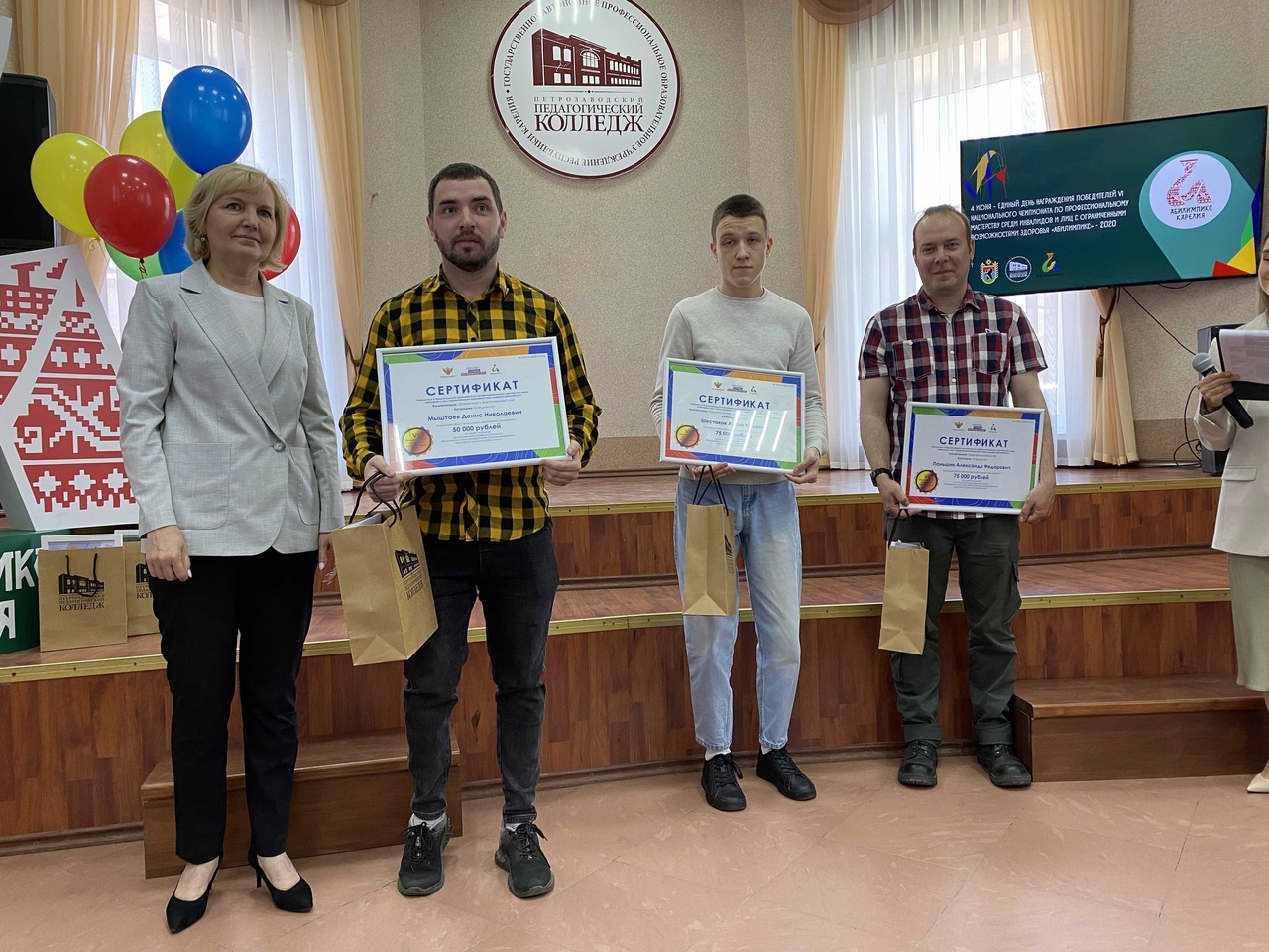 Сегодня в актовом зале Петрозаводского педагогического колледжа состоялась торжественная церемония награждения победителей VI Национального чемпионата по профессиональному мастерству среди инвалидов и лиц с ограниченными возможностями здоровья «Абилимпикс», который проходил в 2020 году в рамках единого дня - 4 июня.,