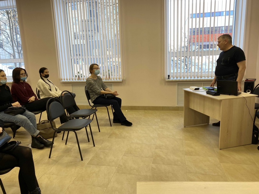 Руководители Центра "Гармония" Черепанов Олег Анатольевич и Крицкая Наталия Анатольевна рассказали студентам о комплексном подходе в решении вопросов реабилитации инвалидов по зрению. Познакомили будущих преподавателей с новыми тифло техническими средствами для помощи инвалидам в образовании, а также средствами для ориетировки инвалида в макро и микро пространстве.