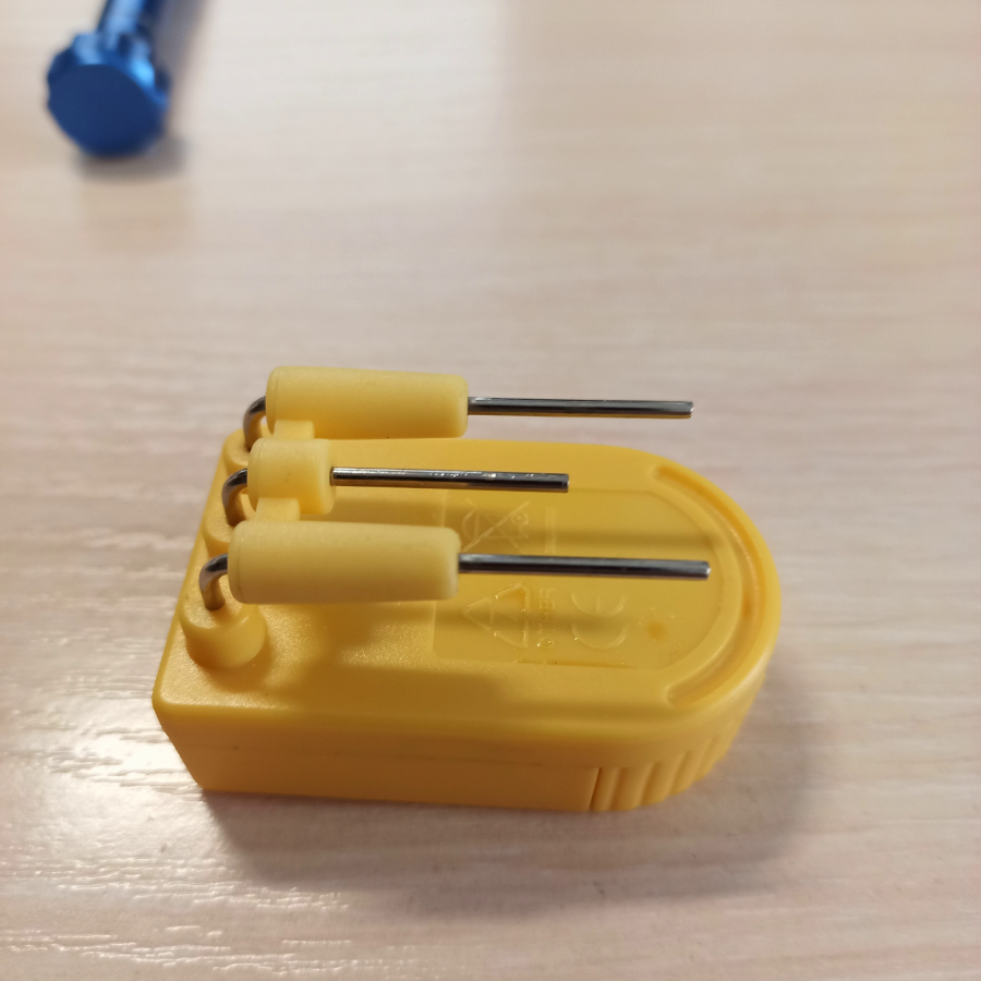 Начнем с внешнего вида: устройство представляет собой прямоугольник размером 5 на 3 сантиметра, примерно с коробок спичек. С одной из его сторон выведены три электрода параллельно корпусу. Таким образом устройство возможно фиксировать на грани кружке. В зависимости от модели может отличаться способ установки батареи. В случаи с нашем устройстве одна из сторон имеет закругленную форму. Потянув за нее она выдвинется из нее можно будет извлечь и установить батарейку формата CR2032. Батарейка вставляется в нишу плоской стороной вниз. После этого ниша задвигается обратно.