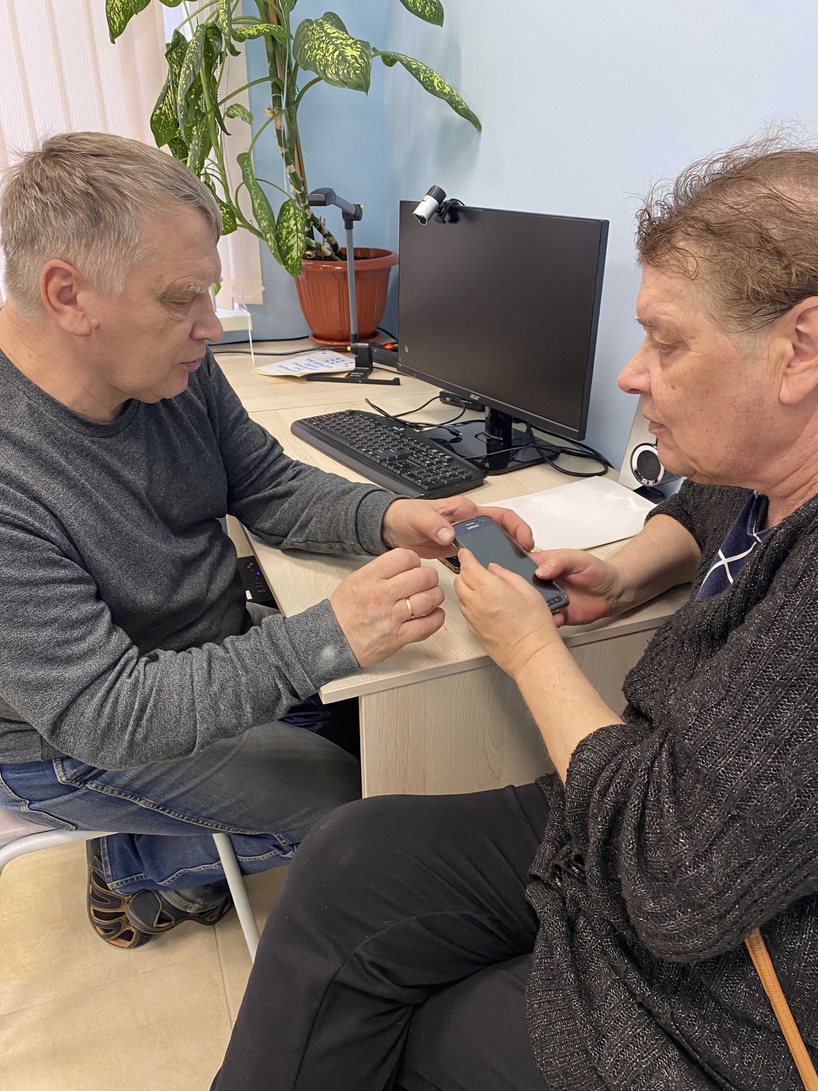 В рамках реализации проекта Главы Республики Карелия АНО "Гармонией" "Вектор доступности" специалисты по ориентировке в пространстве и мобильности людей с ограниченными возможностями здоровья продолжают знакомить и обучать незрячих использовать аудио информаторы, трости и мобильные устройства.